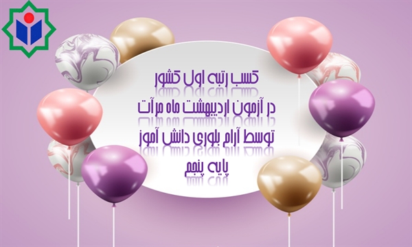 • کسب رتبه اول  کشور  در آزمون مرآت  اردیبهشت ماه 1400 توسط  آرام بلوری دانش آموز پایه پنجم