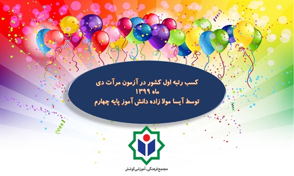 • کسب رتبه اول کشور در آزمون مرآت دی ماه 99 توسط آیسا مولا زاده دانش آموز پایه چهارم