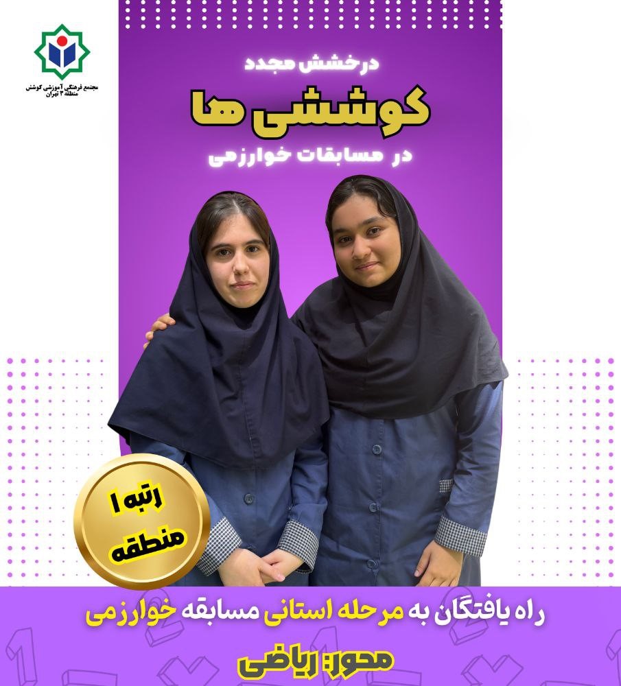 درخشش دانش‌آموزان عزیز پایه نهم دبیرستان دوره اول کوشش در جشنواره نوجوان خوارزمی